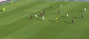Insigne, tutto libero, sulla zona trequarti serve Mertens che trova lo spazio tra terzino e centrale. Linea difensiva del Cagliari da rivedere. Rastelli ha tanto da lavorare. Con Insigne tutto solo e libero in grado di mettere la palla dove vuole, il centrale sardo tenta un'uscita senza motivo invece di indietreggiare. Palla coperta o palla scoperta? Il Cagliari ha tanto da lavorare.