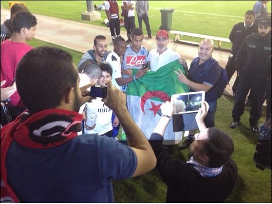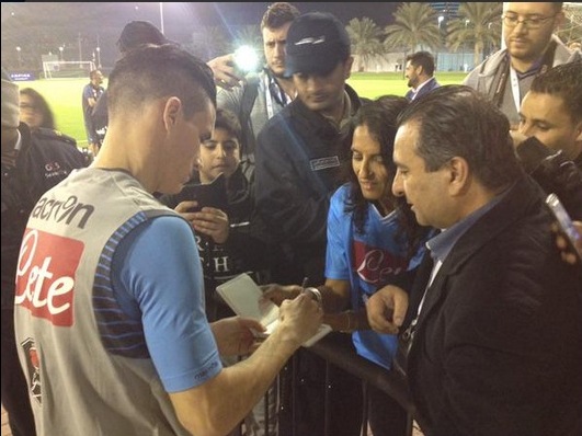 A fine allenamento pubblicate sul profilo twitter @sscnapoli le foto degli azzurri e Benitez che firmano autografi e fanno foto con i fan in Qatar.