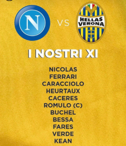 Questo l’11 titolare degli scaligeri, con il napoletano Verde sulla fascia e l’obiettivo Fares a rimorchio della punta Kean: