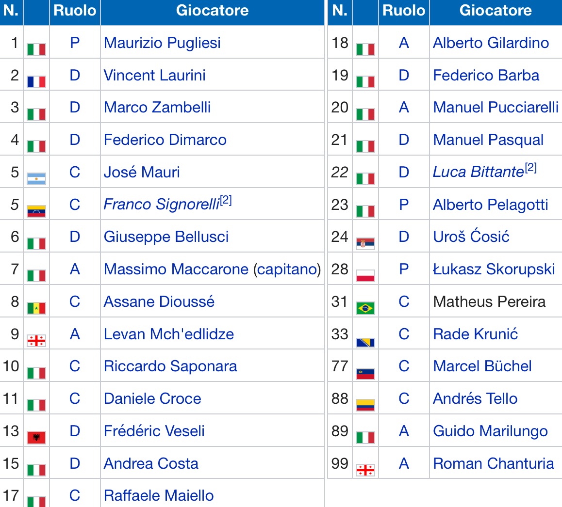 Top Player: Seppur in ombra quest’anno, Riccardo Saponara è la stella di questa squadra. Le sue accelerazioni possono mettere in difficoltà la retroguardia avversaria, che ha già punito più volte negli scorsi anni.