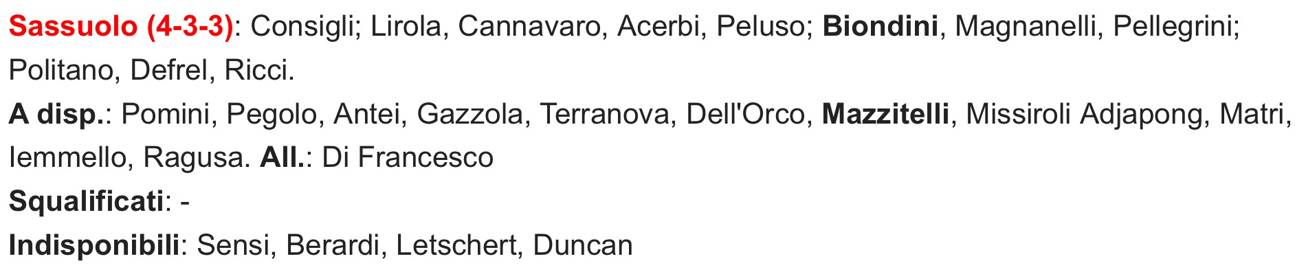 L’avversario – Sassuolo: “Vietato perdere il treno”