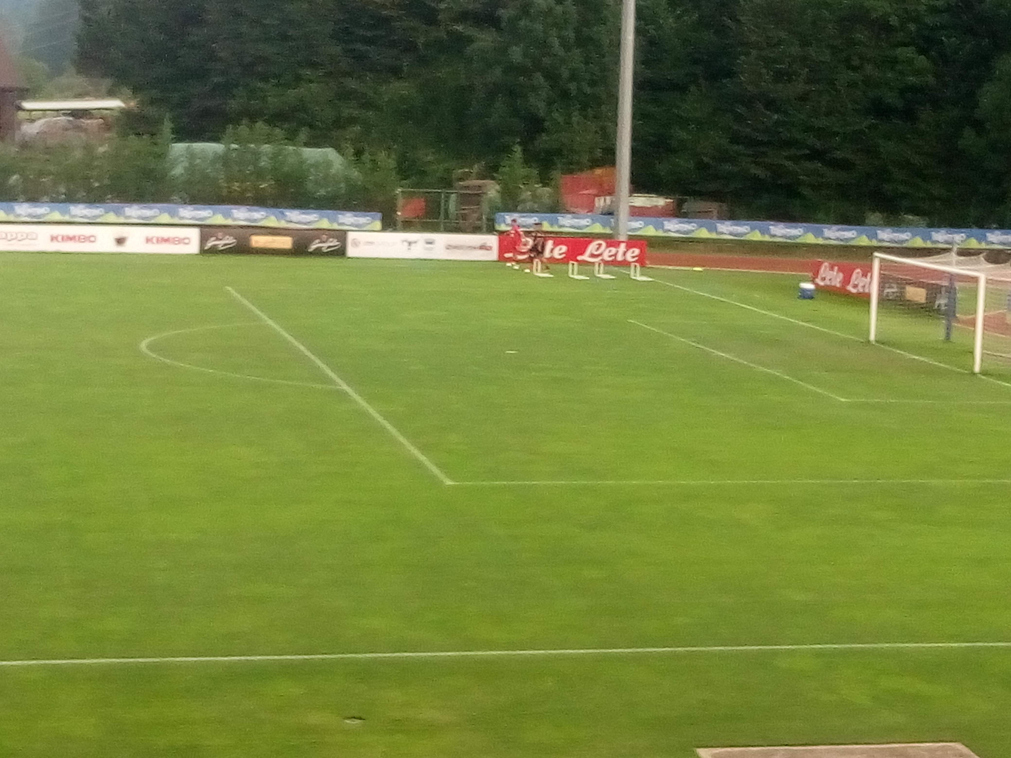 Mentre De Guzmán ha già concluso la sua seduta, gli altri tre proseguono il lavoro differenziato con piccoli scatti, stretching e superamento di ostacoli.