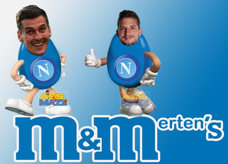 L’intesa in campo prosegue anche lontano dal terreno di gioco. Arek Milik su Twitter ha pubblicato una foto taggando il compagno di squadra Mertens in un foto-montaggio che li ritrae sottoforma di celebri cioccolatini M&M (Mertens e Milik)