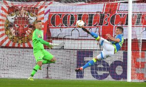 Lo stadio è ammutolito al 14’ quando Milik sigla il goal del vantaggio di mezzarovesciata. Appena dieci minuti dopo arriva la rete del pareggio di Dabbur, facilitato da un erroraccio di Allan sulla trequarti. È infatti solo dalla mezz’ora che il Salisburgo comincia a rendersi pericoloso, nonostante il risultato pesante e senza apparente possibilità di recupero.