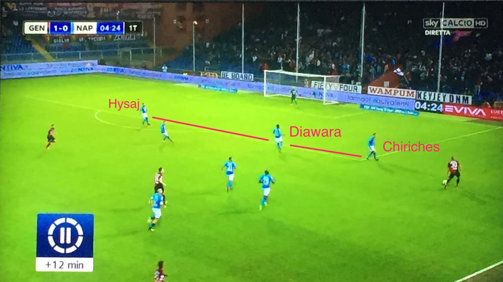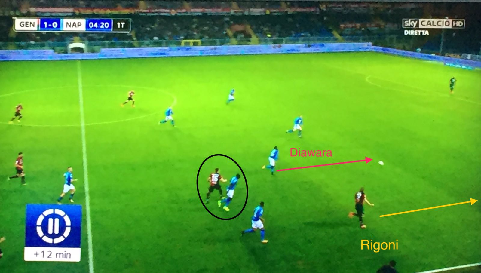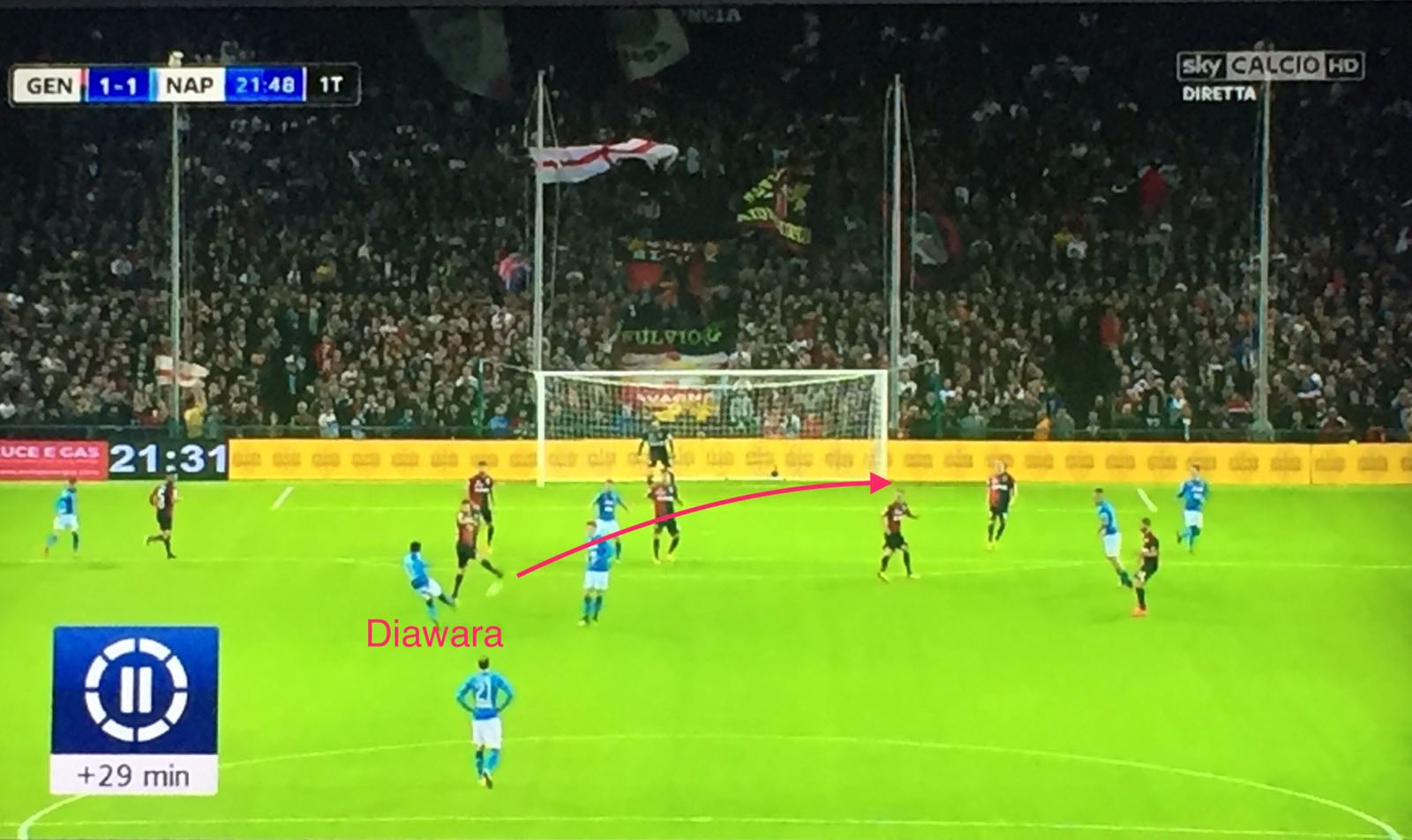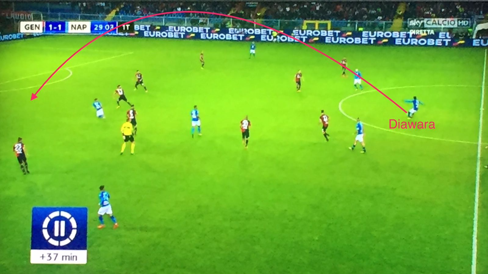 Prima di “Marassi”, 2+2 era la combo di partite disputate dal 1′ da Amadou Diawara nell’attuale stagione: nemmeno il 30% netto rispetto al totale – tra campionato e Champions, preliminari inclusi; tutte in trasferta tra l’altro – Verona, Ferrara, Charkiv e Manchester. Sempre in mezzo a Zielinski ed Hamsik: quando ci sono loro due, la presenza del guineano in campo – titolare – è praticamente una certezza. Il perchè è evidente: con delle mezzali così, il terzo – il metronomo – deve dare copertura alla difesa, più di quanto non sappia già fare – ad esempio – uno come Jorginho. A Genova, Sarri decide di giocarsela proprio con questi tre: scelta – in teoria – quantomeno discutibile considerate le caratteristiche dell’avversario – molto dinamiche – e tenuto anche conto del loro stato di forma. Il gol di Taarabat – e sono quattro, poi diventate cinque su sette le reti incassate in Serie A quando manca l’11 base – sembrava potesse confortare taluni (brutti) presagi e far rimpiangere ancora una volta l’esclusione di Allan o il mancato impiego di Rog. Ma è Diawara a metter tutti d’accordo, a saper fare qualsiasi cosa: impostare alla Pirlo come ringhiare alla Gattuso, lanciare le punte e alzare la diga per arginare le ondate.