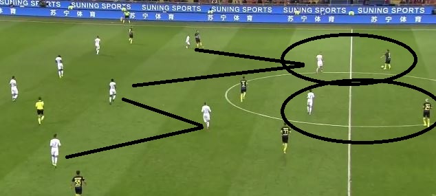 D'Ambrosio s'inserisce, Insigne resta a metà strada. Candreva riceve palla con Ghoulam che lo segue sempre e non si stacca. Il movimento dovrebbe essere alternato con Insigne con il talento di Frattamaggiore che dovrebbe prendere Candreva e Ghoulam D'Ambrosio. Il terzino algerino esce troppo in pressione e costringe Insigne ad occuparsi della fase difensiva.