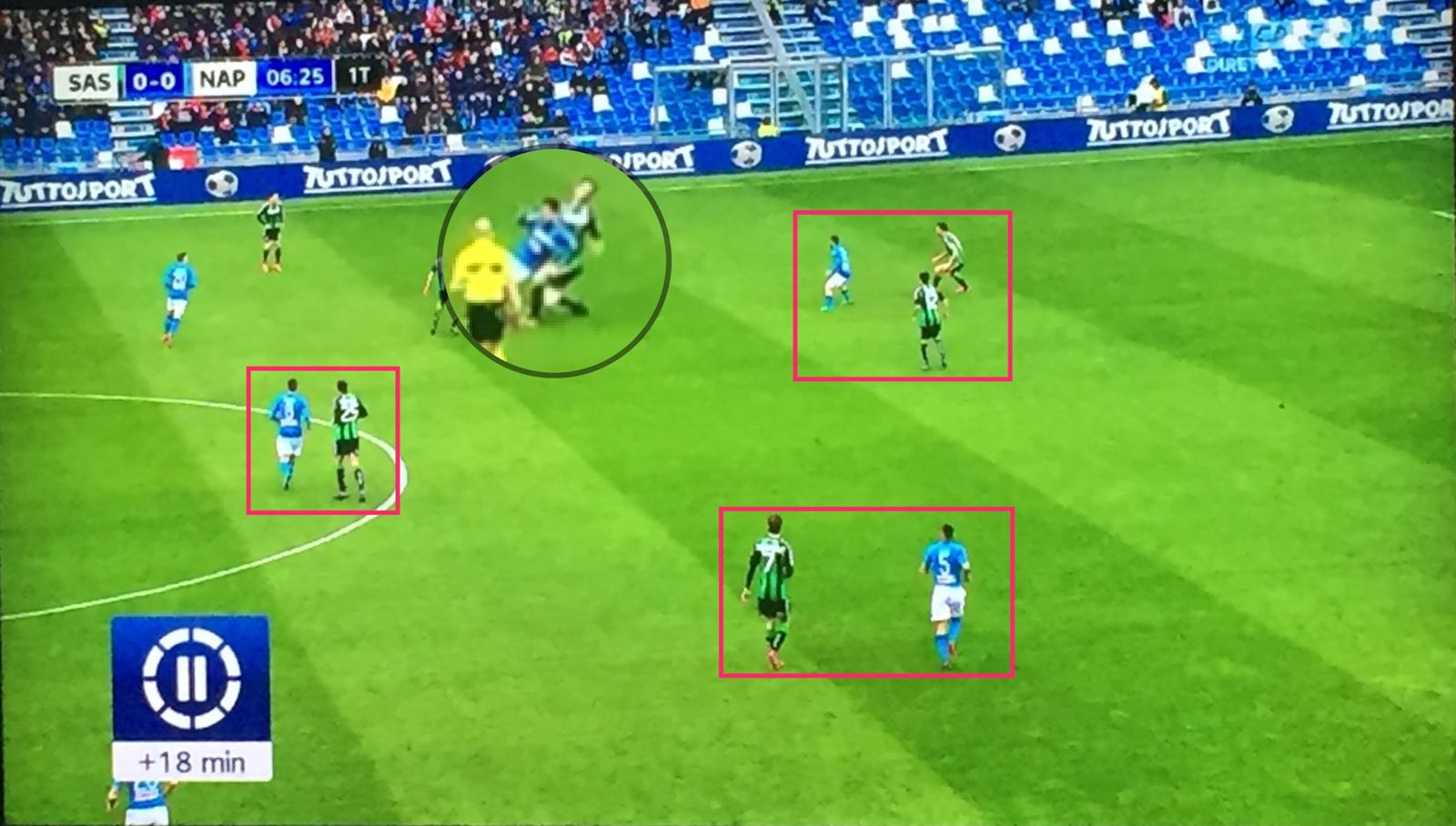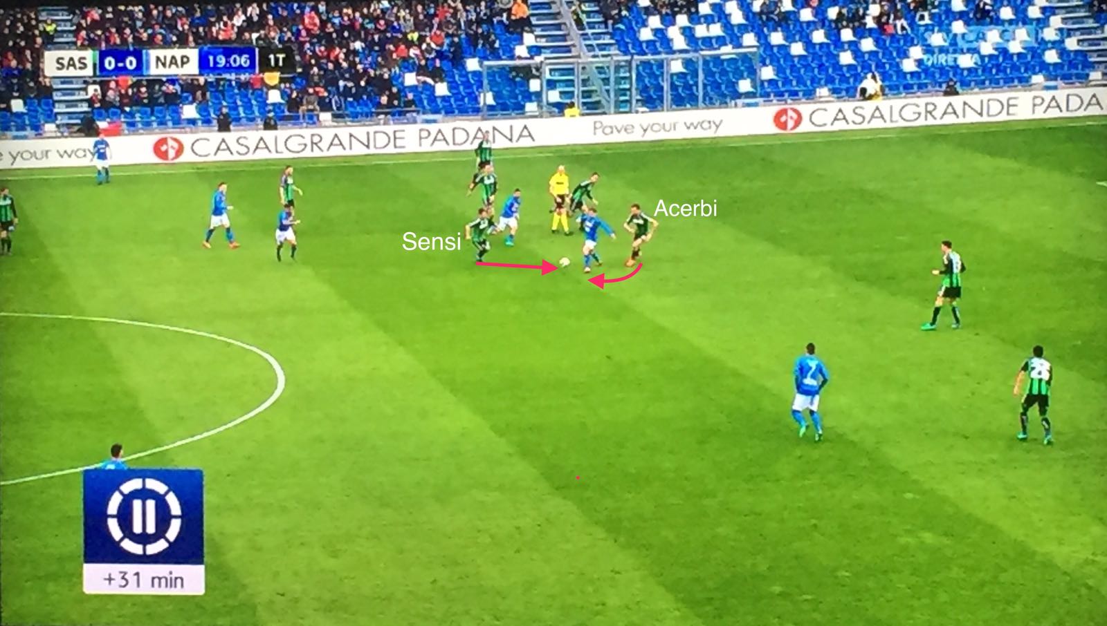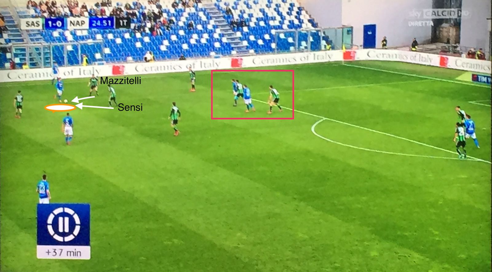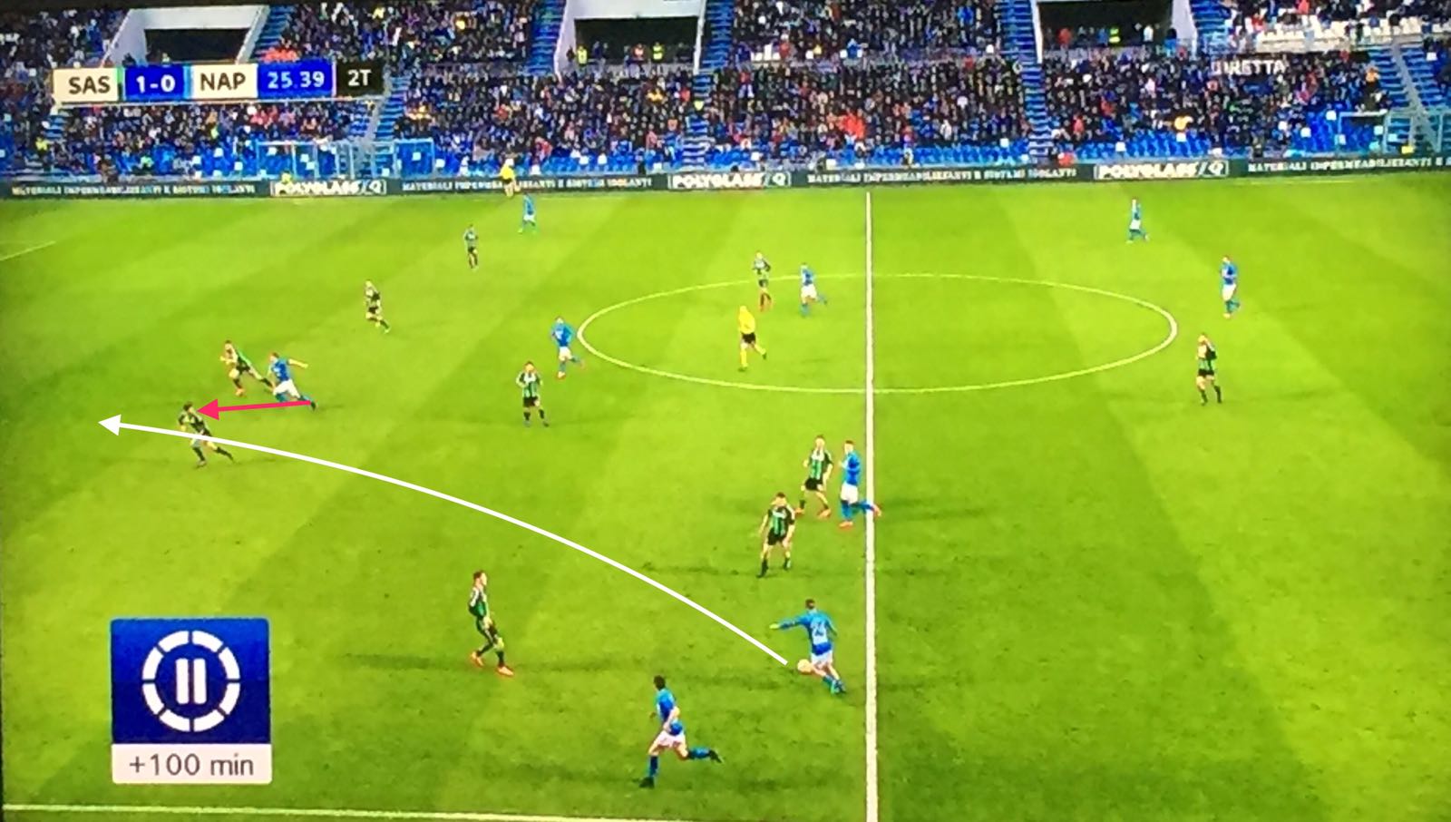 La lettura dei difensori del Sassuolo, semplice ed efficace: Mertens va inseguito e non fatto girare. Iachini ha inibito le azioni offensive del Napoli: gli scambi in velocità corto-lungo e le sponde, le penetrazioni rasoterra e centrali. L’ha costretto ad alzare spesso il pallone e terminare parecchie volte in offside. Acerbi e Sensi affliggono chiunque: lo stesso Insigne, al “posto” di Mertens, ha il fiato sul collo. E non ci sono azzurri disposti a ricevere: Missiroli è nelle vicinanze di Allan, Berardi si sacrifica su Jorginho.Qui Acerbi, prima Goldaniga: a turno, il Sassuolo fa ruotare i responsabili della marcatura su Mertens. Il belga sente la necessità di entrare in partita, di offrire sbocchi alla manovra per darle respiro. Ma gli avversari hanno sempre il tempo di fermarlo, disinnescando le sue eccellenze: la conclusione dal limite e la rapidità d’esecuzione nel breve. Scelte che gli sono state impedite, sia da un suo scadimento di forma fisica che dal dispositivo neroverde: uno scenario che ha fortemente complicato la partita del Napoli. Che anziché cambiare registro, ha avuto il demerito di continuare a percorrere la solita strada, per giunta irta d’ostacoli: un Napoli prigioniero del suo fraseggio. Di sè, in pratica.Allora Mertens prova addirittura a partire da lontano, lontanissimo, alla Lavezzi prima maniera. Ma non sono queste le sue caratteristiche naturali: Mertens non è uno che li scarta tutti come birilli, testa bassa e ultra gas; e poi è anche un oltraggio al modo di giocare della squadra, così convenzionato e vincolato. Uno status di confusione evidente – no sense Zielinski lì, braccato -, un’ansia da prestazione che scatta appena dopo il vantaggio di Politano: il singolo che si mette in proprio e manda al diavolo schemi e meccanismi vari. Calciatori stufi della logica, a caccia dell’improvvisazione: un andazzo pericolosissimo.Con Milik è diverso. Paradossalmente più vivace il polacco, malgrado una certa struttura fisica. Finalmente qualche attacco alla profondità. Di buon impatto il suo ingresso. Interessante il duello che innesca con Acerbi e tira su i compagni. Che con la presenza d’una tipica prima punta, trovano un sostengo a cui appoggiarsi. Un’alternativa: dritto per dritto, con raziocinio, assecondando l’iniziativa di Milik. Ne giova l’intero collettivo: Insigne, ad esempio, si scrolla di dosso la scimmia del gol e pensa a fare quello che gli riesce meglio – l’assist.Milik c’è, ed è una bellissima notizia: come in occasione del pareggio (“tripartito”: 33% Rogerio, 33% Callejon, 33% suo). Sta bene, ha voglia, fa quello che serve ed una prima punta deve. Occupare l’area, alla base del compito; stazionarvi, ma senza staticità; confondere il difensore con continui movimenti e contro-movimenti. Nella fattispecie: secondo e primo palo in un brevissimo istante, per tentare d’eludere qualsiasi intervento e realizzare. Non segna, tuttavia si dimostra ugualmente utile: sul cross di Mario Rui, Milik non ci arriva d’un soffio in scivolata; la sfera comunque passa, attraversando il giusto corridoio fino a raggiungere la sponda opposta.