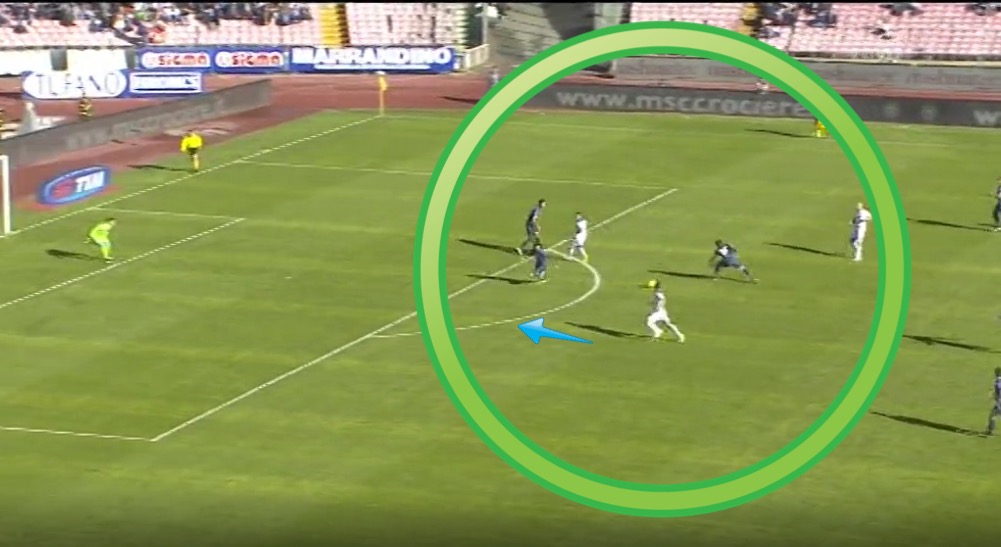 Nell’occasione della prima realizzazione dei toscani,si denota una fase difensiva deficitaria, poco organizzata come collettivo. Ad inizio azione Jorginho in possesso palla,non trova Albiol come classico sostegno indietro ad esso, (cosa inusuale) giro per Ghuolam che commette un grave errore tattico, chiedendo lo scambio a Mertens,marcato e con spalle alla porta,andando in avanti quando non c’era bisogno avendo praticamente il muro empolese davanti.Nella ripartenza vi troviamo un 3 vs 3 ( come spesso accade in questa stagione) con Albiol che riesce ad posizionarsi nella linea difensiva, rinculando verso l’area ( troppo ) ma la seconda cosa inusuale e’ che Henrique sia davanti a D.Lopez e Jorginho, che si fanno attrarre dalla palla,senza preoccuparsi dell’uomo che arrivava da dietro. Troppe amnesie difensive che costano ancora punti alla squadra azzurra. Quando riusciremo a vedere una squadra equilibrata,e attenta in facili letture di gioco?
